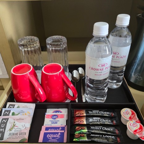글라스2잔, 머그잔2잔, 티스푼2개, 커피포트, 얼음 바스켓이 객실에 준비되어 있었다