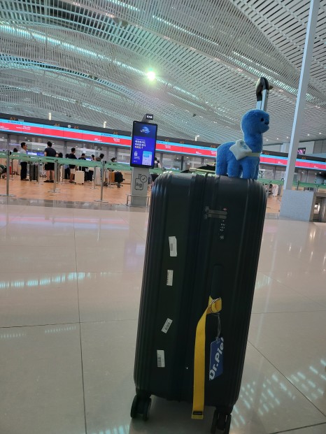 캐리어 붙이기 전 공룡이 한 컷, 공룡이 인천공항 도착!