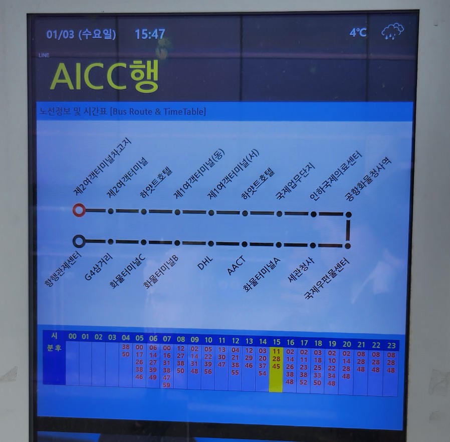 하얏트호텔, 제1터미널, 제2터미널, 세관청사 등 다양하게 정거장을 순환하니 이용에 참고하면 됩니다.