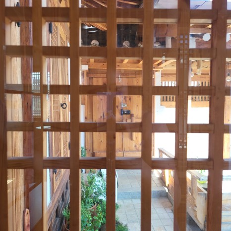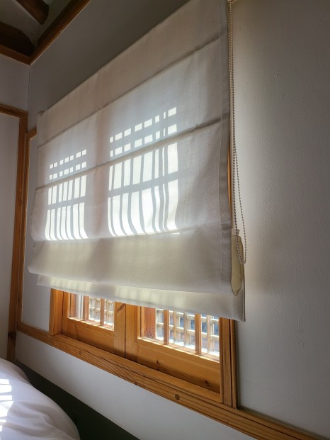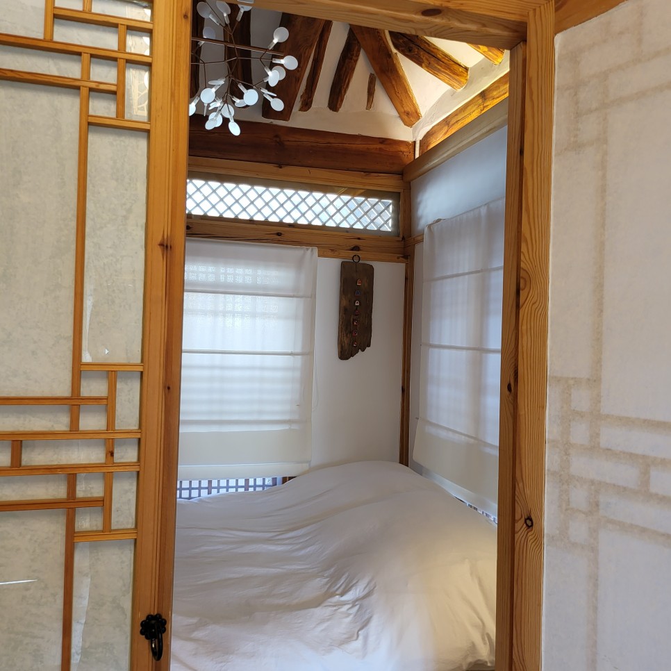 큰방에서 햇살이 비추고 한옥의 격자가 보여질때 너무 예쁘더라