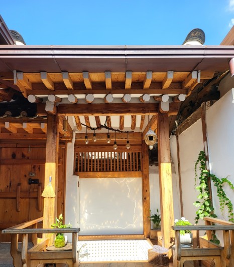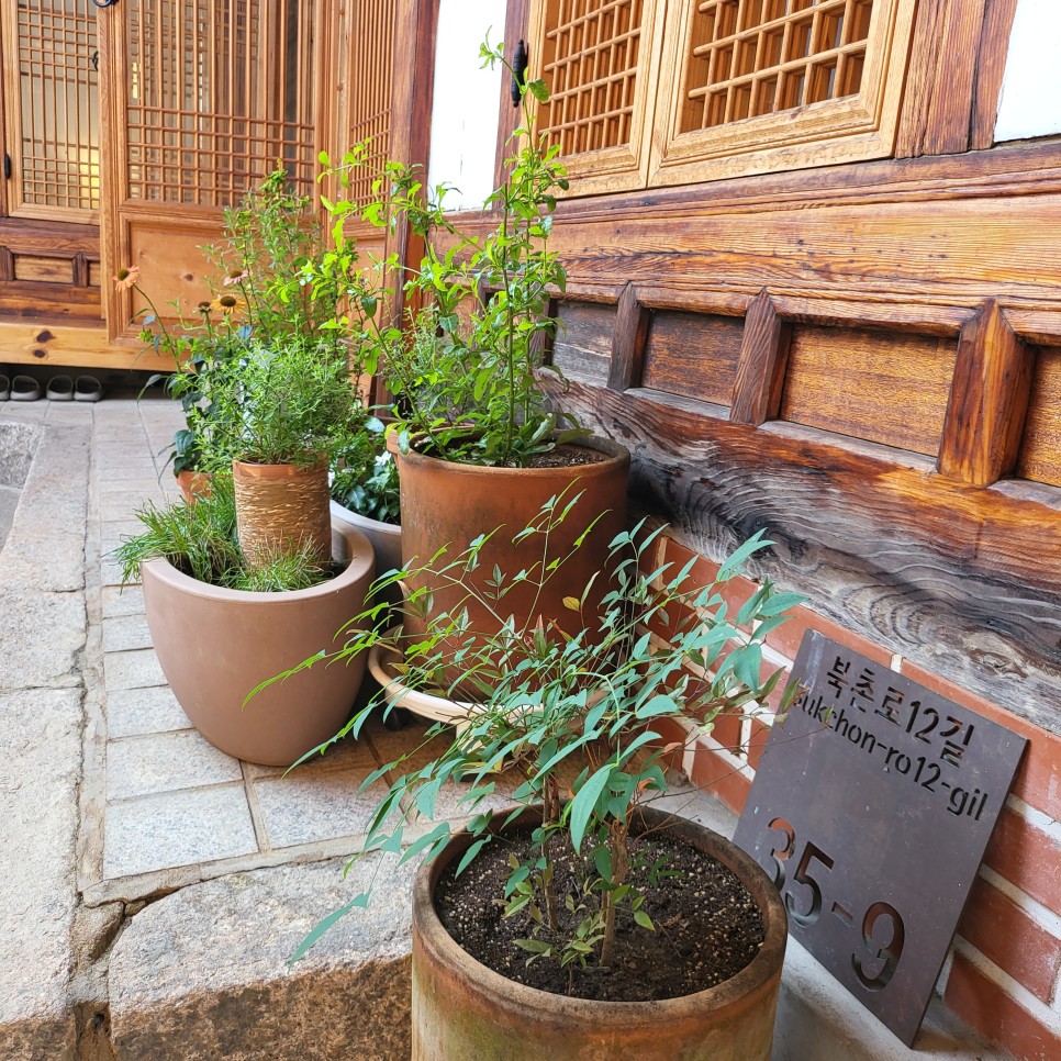 한옥의 묘미는 바로 이런 화분과 한옥 나무의 어우러짐 아닐까?