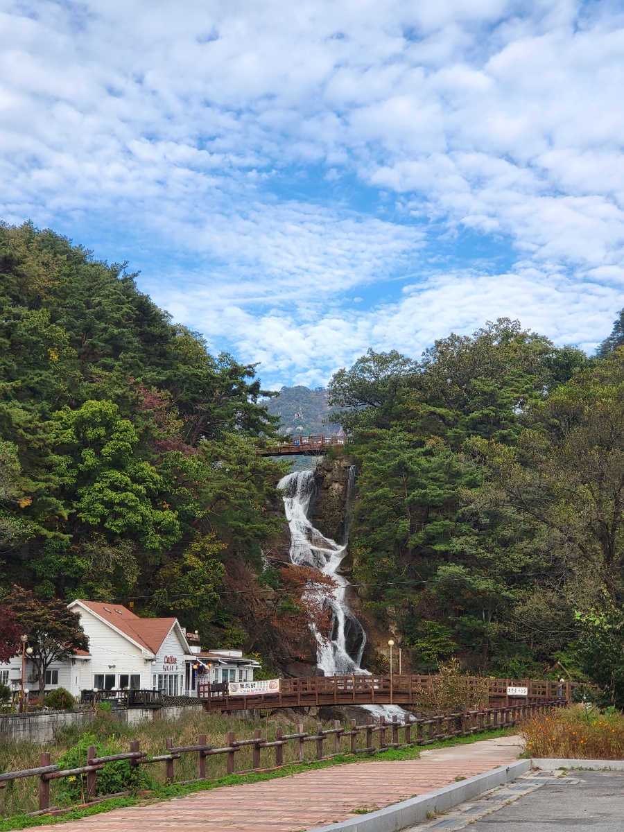 한화리조트에서 길만 건너면 산정호수를 빙둘러 산책이 가능하다