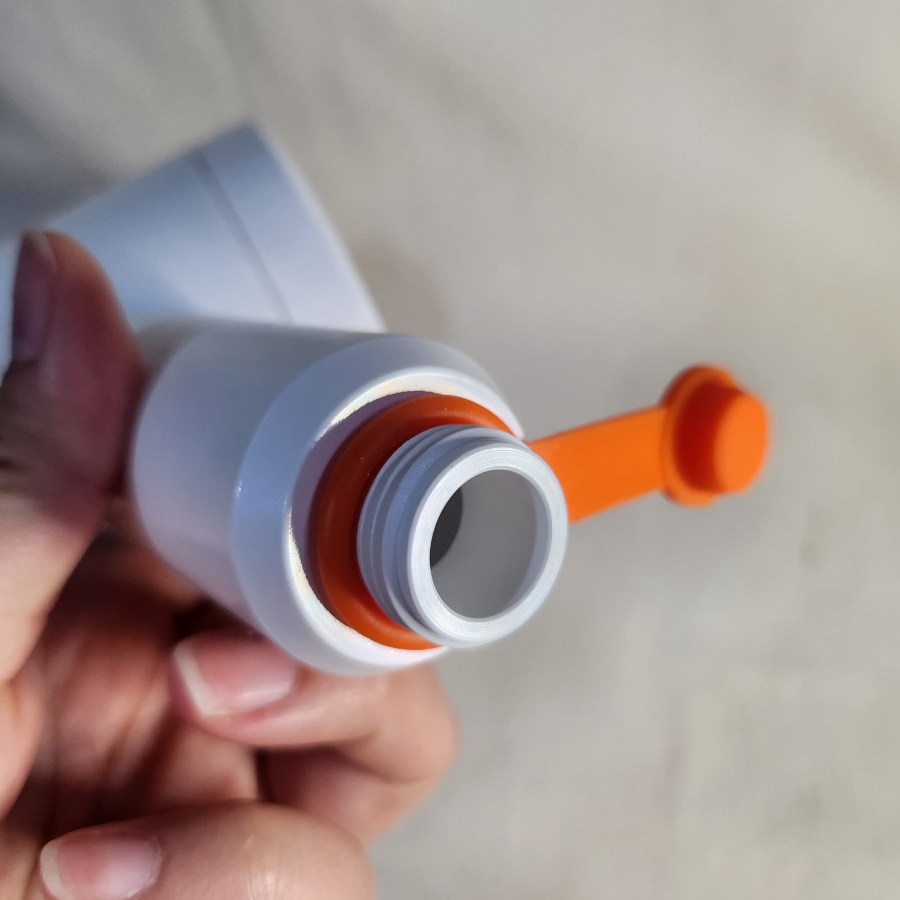 짐 속에서 물이 쏟아질 걱정 없이 사용할 수 있도록 실리콘 캡이 있어서 정말 편리하다는
