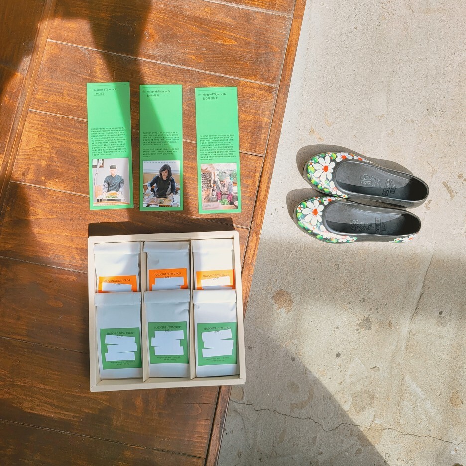 꽃모양의 고무신과 다도를 즐길 수 있는 티 셋트