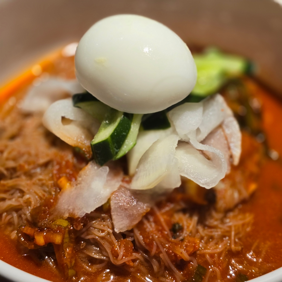 저희는 오늘 밥 대신 비빔냉면으로 맛만 보기로 했어요!