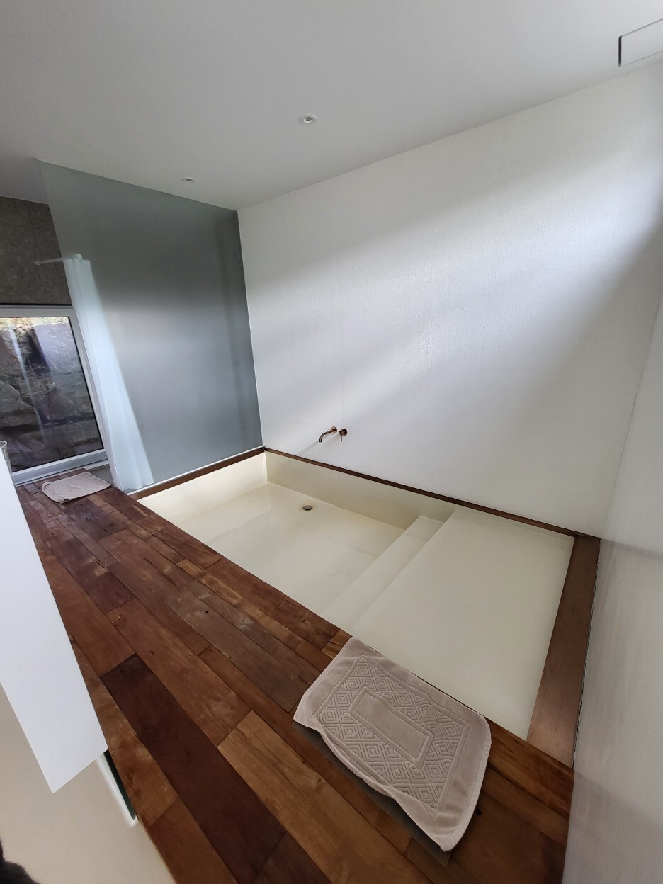 사실 이 숙소의 포인트는 거실 한켠에 있는 큰 수영장과 같은 이 욕조였는데