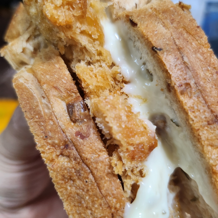 우선 저는 간단하게 호밀빵에 돼지돈까스를 얹고 갈릭마요네즈를 뿌렸는데