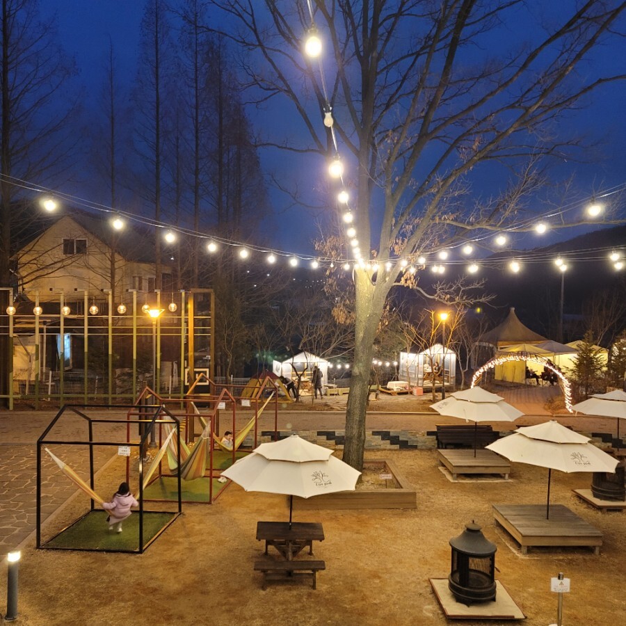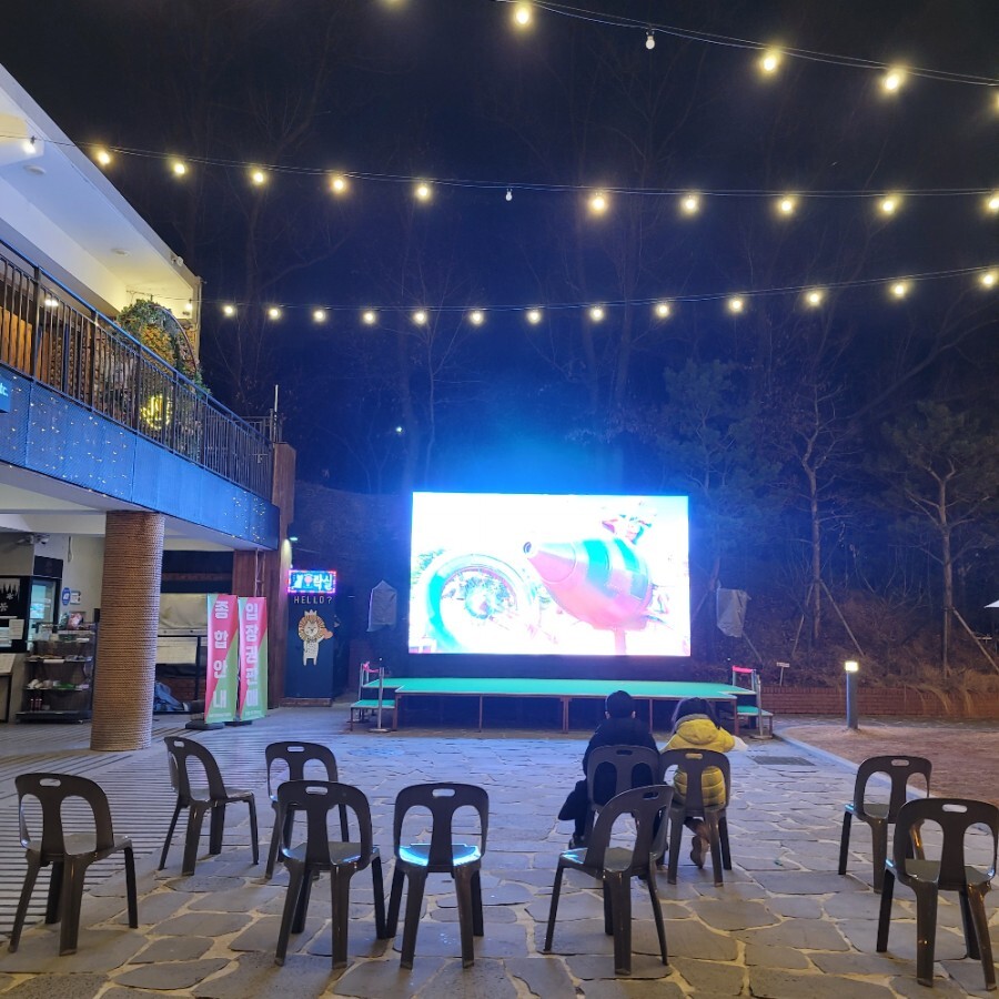 아이가 있는 가족들끼리 영화 시청도 하고 해먹그네에 앉아서 보고 그러더라구요