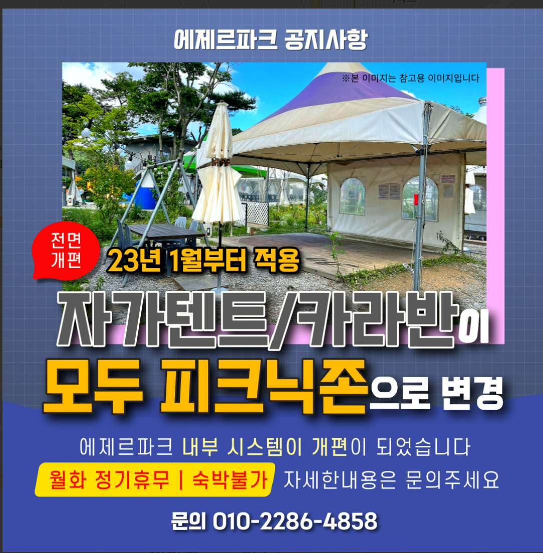 2023년 1월부터 모두 피크닉존으로 변경됨과 숙박이 불가한 점 참고하시면 더 좋을 것 같아요