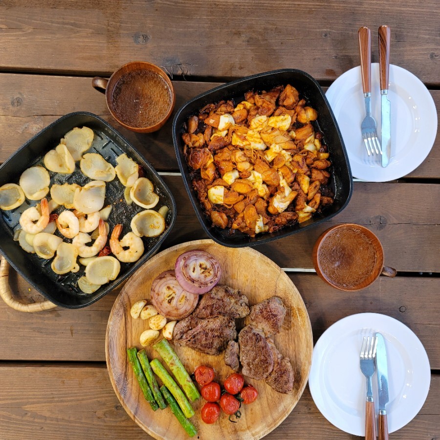 버터관자새우볶음, 스테이크, 닭볶음 3가지 요리를 했구요