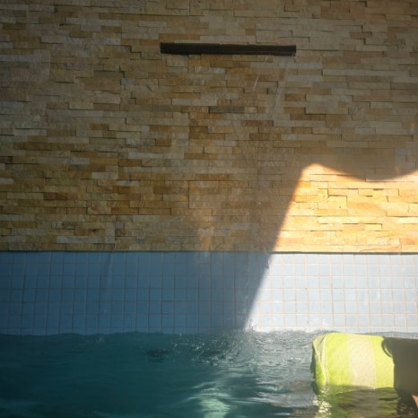 해가 쨍쨍할때는 수영장에서 수영을 했고