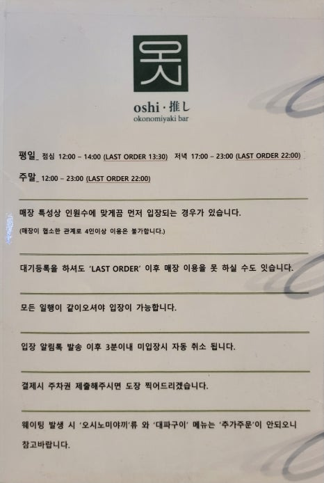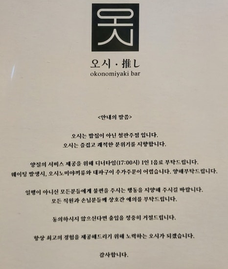 오시 (최애라는 뜻으로 손님들의 최애가 되겠다는 뜻이라고 함)