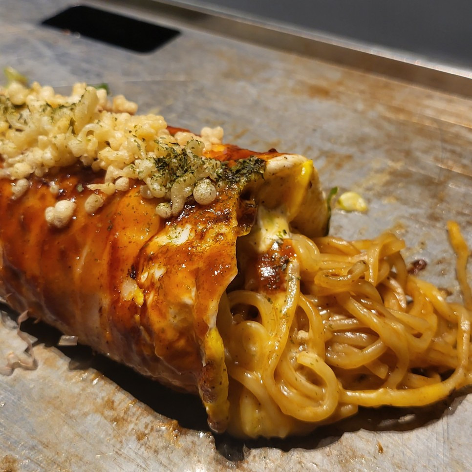 야끼소바를 삼겹살, 치즈에 말아낸 요리