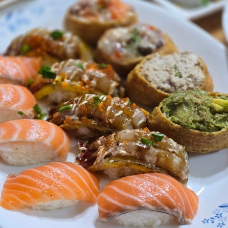 연어초밥, 유부초밥, 새우계란초밥, 롤