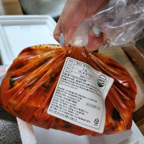 김장 비닐에 양념이 쏟아지지 않게 포장되어 있고