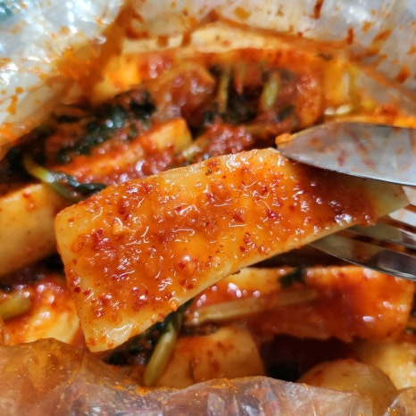 김치통에 넣으면서 작게 잘라서 한입해봤어요